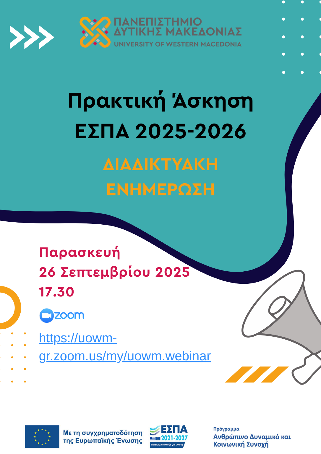Continue reading "Διαδικτυακή ενημέρωση για την Πρακτική Άσκηση ΕΣΠΑ Φοιτητών του ΠΔΜ 2025-2026"
