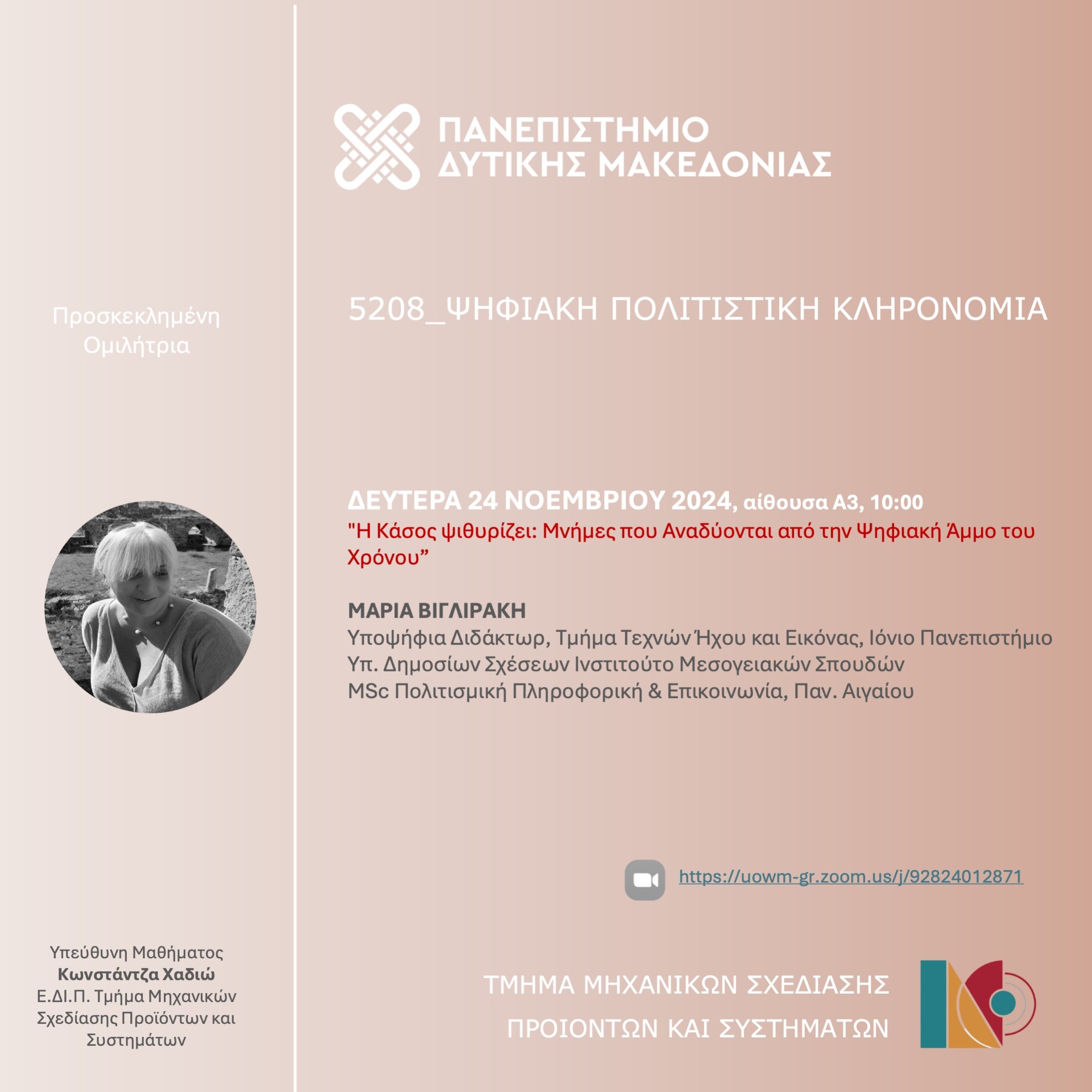 Continue reading "Υβριδική διάλεξη: “Η Κάσος ψιθυρίζει: Μνήμες που Αναδύονται από την Ψηφιακή Άμμο του Χρόνου”, Δευτέρα 24/11/2025 και ώρα 10:00"